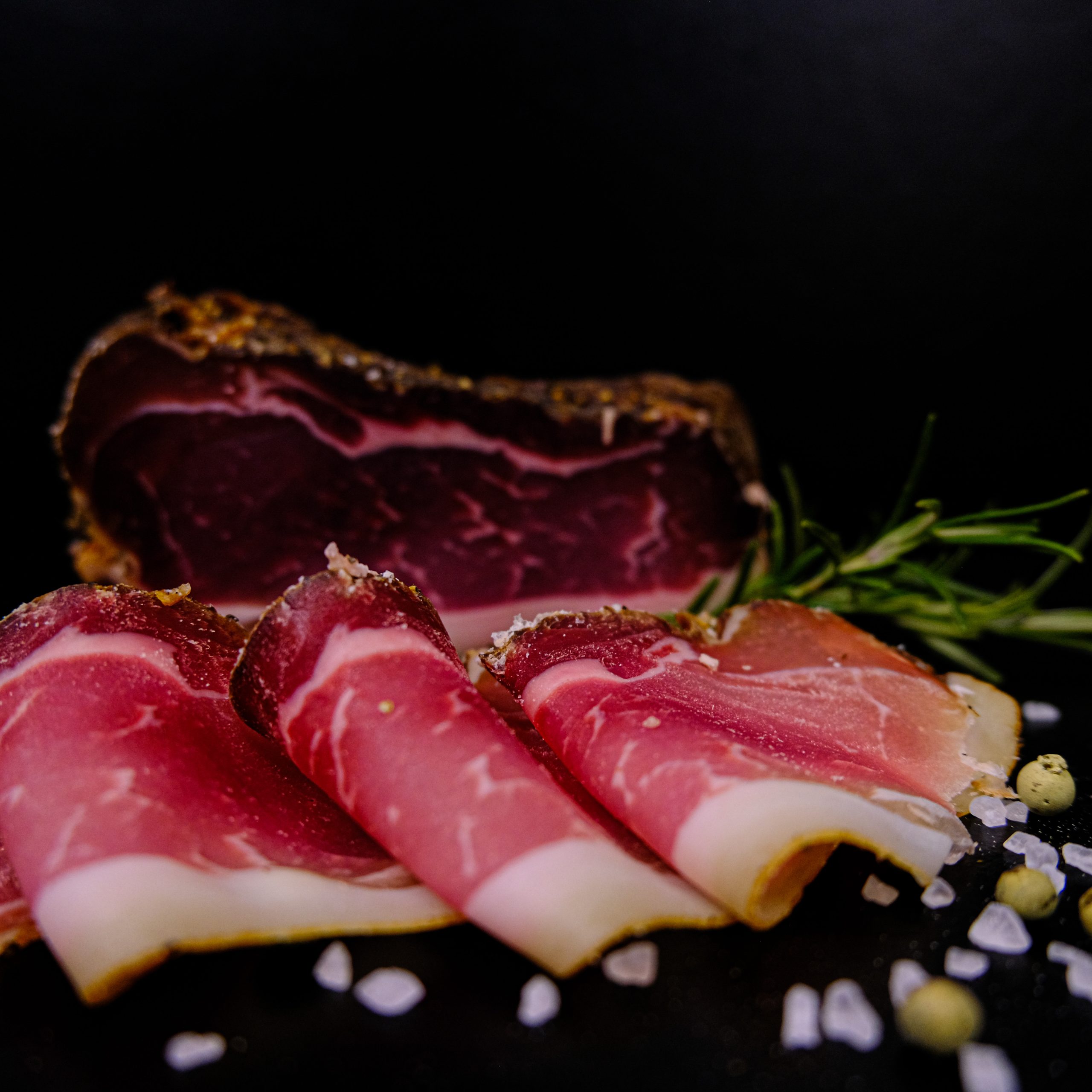 Unser Landschinken wird mit Kochsalz und ausgewählten Gewürzen hergestellt. Er zeichnet sich durch sein Raucharoma aus und schmeckt außergewöhnlich aromatisch. Probieren Sie selbst!